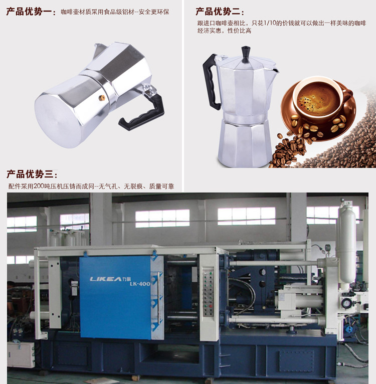 6 people Mocha coffee pot brewed about 220ML, suitable for 2 people to use,