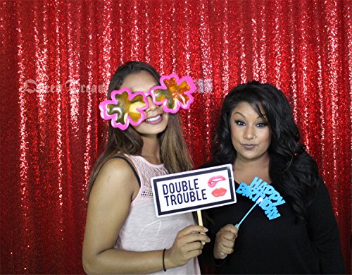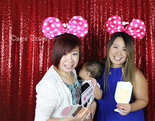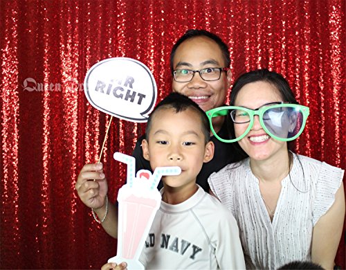 QueenDream 7ft x 7ft(84x84Inch) Red Sequin Wedding Backdrop Sparkly Photography Backdrop For Wedding