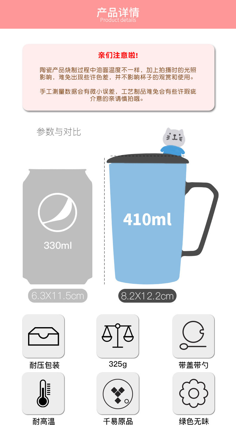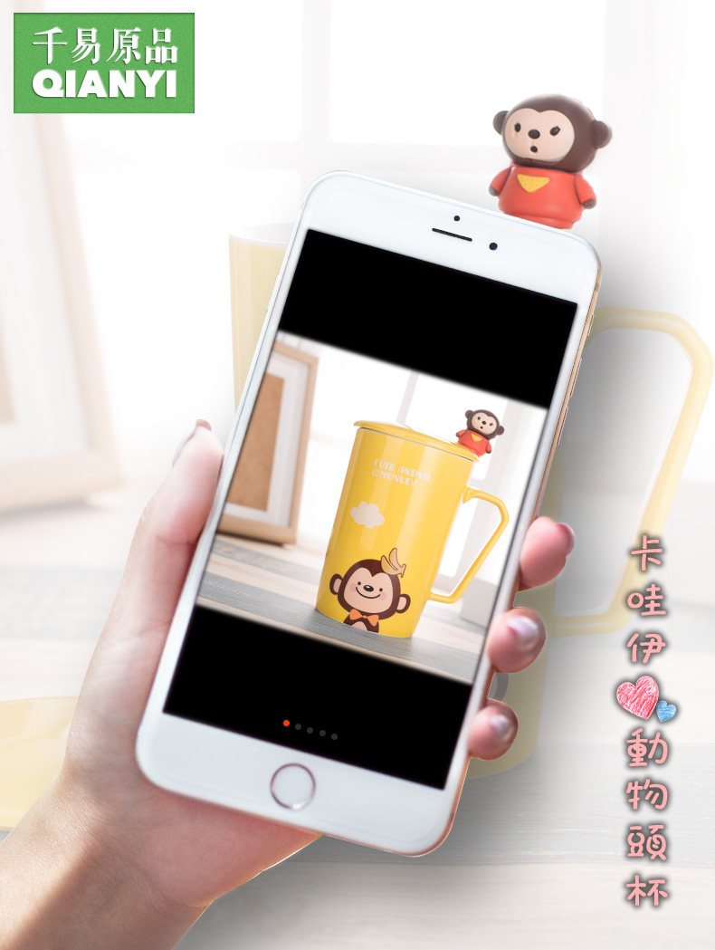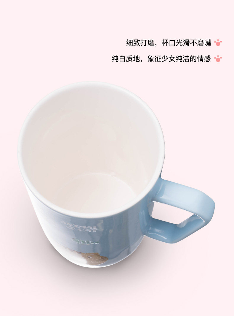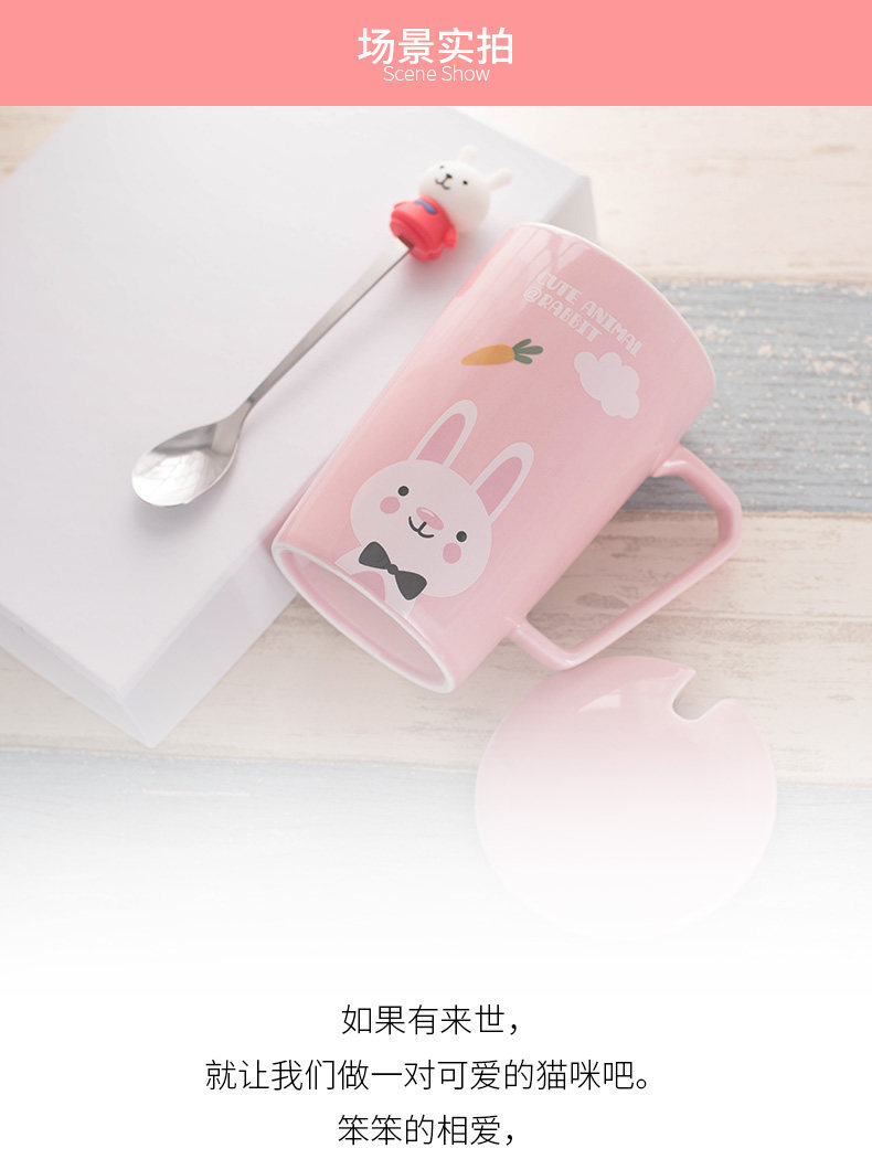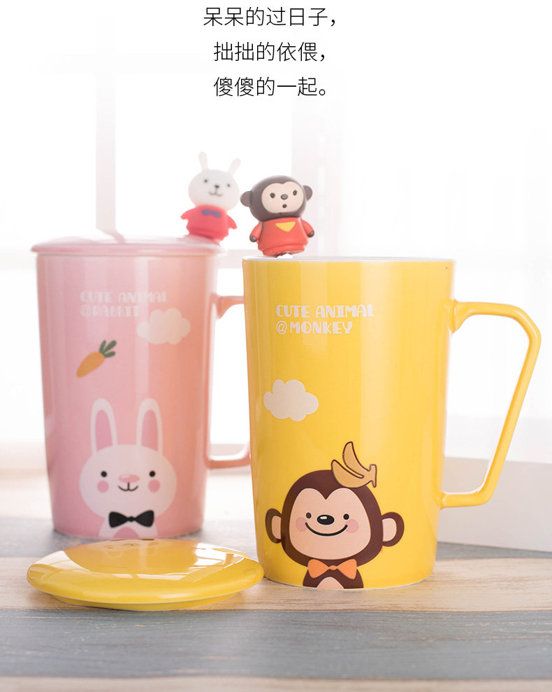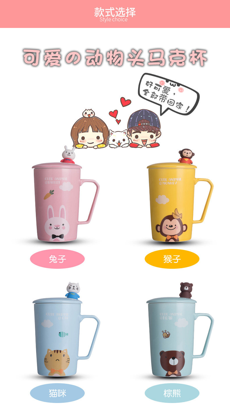 卡通可爱动物陶瓷马克杯咖啡杯带盖勺情侣杯喝水杯子新年礼物创意