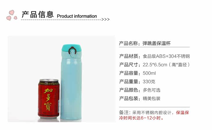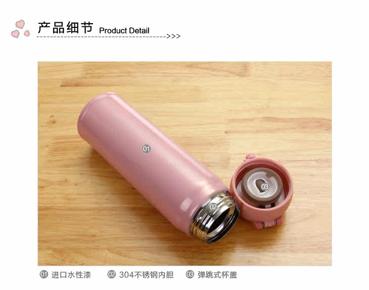 | Product Description | Pearl shells cover readily cup 500ml, advanced vacuum insulation technology, good selection of mainly stainless steel, bright colors, Sparkling Allure, rust, glass body with nonstick fingerprint technology, high-quality stainless steel interior, safe and healthy prolonged cold insulation is easy to clean. Bottom of the cup using protection vacuum welding technology, shockproof, anti-skid, wear, dirt, long time without fading, a push button lid bounce design, simple operation, easy to use, food-grade silicone seals played a leak-proof effect, do not worry about water leakage. |