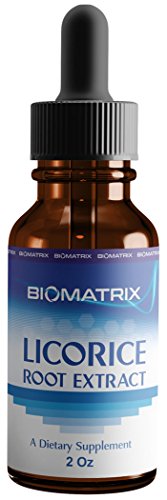 Studio : BioMatrix Publisher : BioMatrix Binding : Health and Beauty Product Description Licorice Root 2 oz, Dietary Supplement, Suggested use: Take as a dietary supplement. Shake first before each use. Supplement Facts, Serving Size: 1 Drop (~0.05ml), Servings Per Container: ~1, 200, Amount Per Serving, Licorice Root Extract (1:1) 35 mg, Other Ingredients: Glycerin and Water. For specific recommendations, or if you are nursing or pregnant, please consult your health professional. Formulated to be free of allergens derived from: Gluten, corn, yeast, artificial colors and flavors. 0