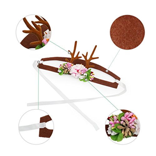 -. Title : Idepet Pet Dogs Cats Adjustable Antlers Headband Christmas Halloween Hoilday Costume with Flowers Decoration Hair Accessories for Puppy