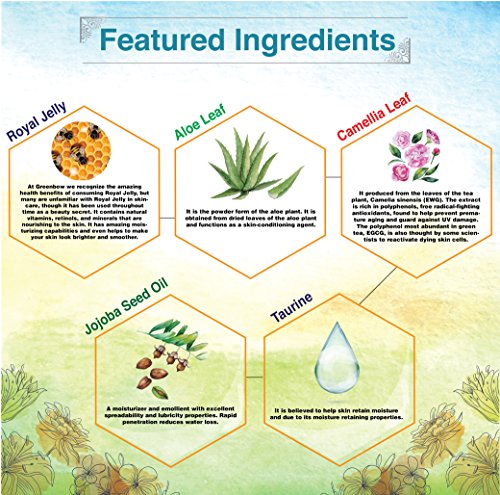 ALL-NATURAL- Greenbow Royal jelly cream is made of 100% natural ingredients and preservatives and is also made with organic ingredients. NO parabens, NO phthalates, NO harmful chemicals.