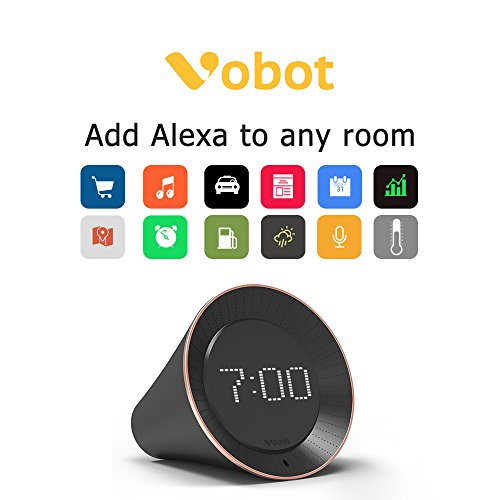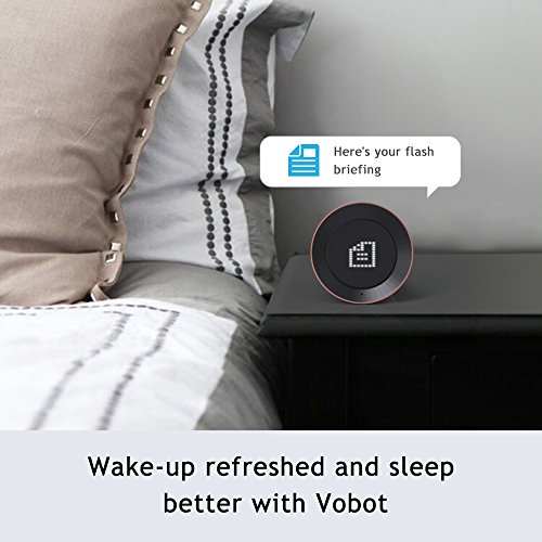 - [Portable&Multiple purposes]: Includes a built-in speaker so it can work on its own as a smart alarm clock in the bedroom, an assistant in the kitchen, or anywhere you might want a voice-controlled computer; with battery back-up (included) so Vobot will sound even during power outage. Always getting smarter and adding new features and skills.