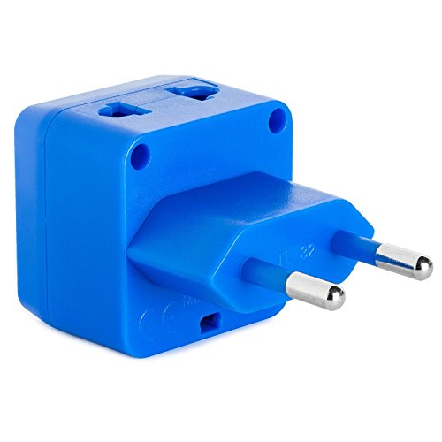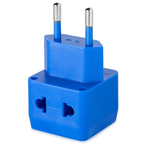 Yubi Power 2 in 1 Universal Travel Adapter with 2 Universal Outlets - Built in Surge Protector - Blue 2 Pack - Type C for France, Germany, Hungary, Portugal, Russia, Spain, Sweden, Egypt, Turkey, more