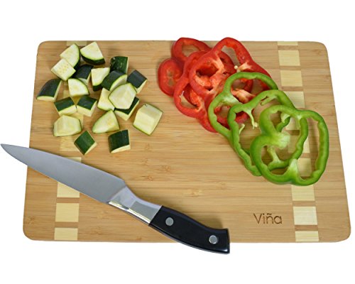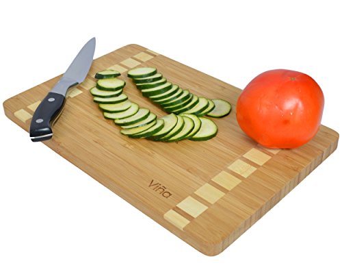 Vina Organic Bamboo Cutting Board Serving Tray,12”x 8” Medium Best Kitchen Wooden Chopping Board for Meat (Butcher Block) Cheese and Vegetables