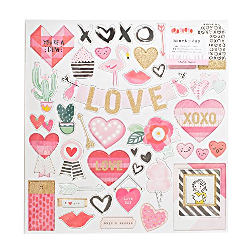 American Crafts 375910 Gold Glitter Crate Paper Heart Day Gold Glitter Chipboard Stickers 44Piece