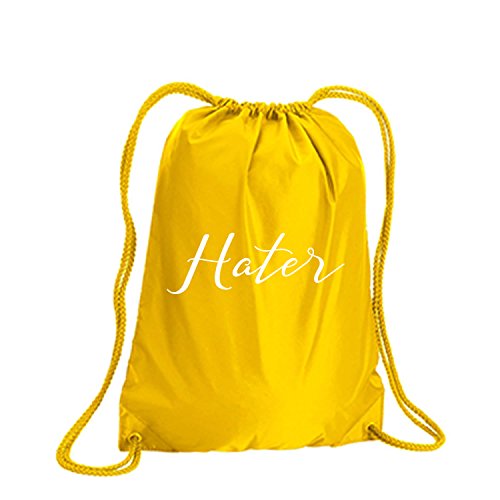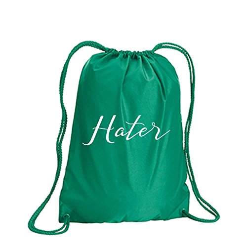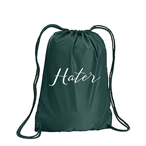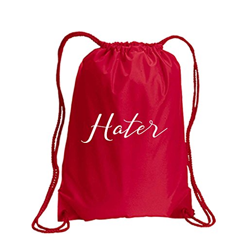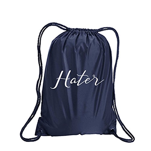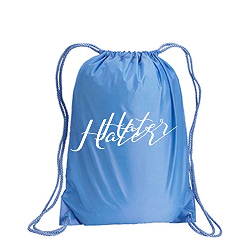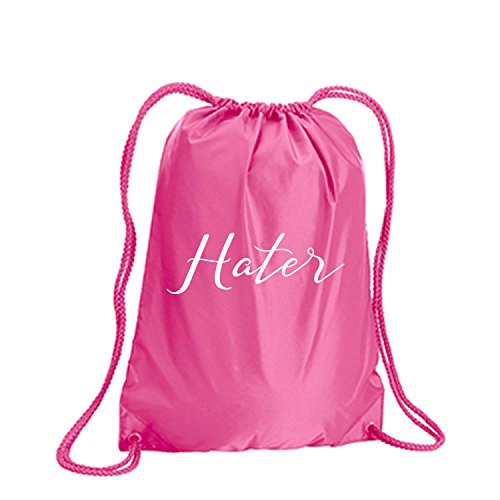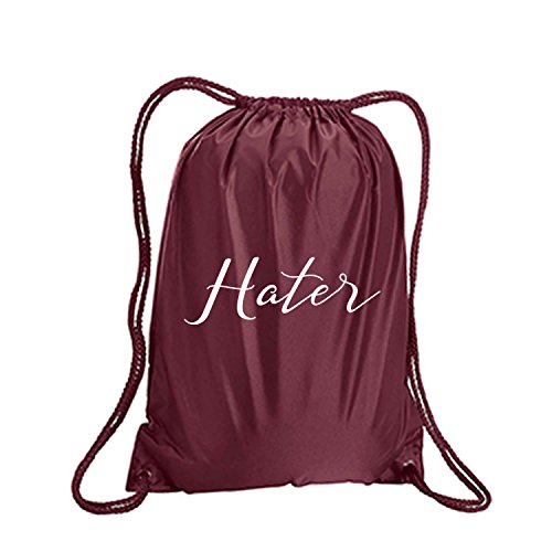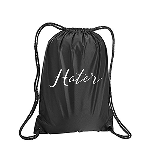 Product Description This durable and stylish nylon tote features "Hater" on a cinch pack tote with white ink. Bag comes in small and large sizes and is made of a durable 210 Denier nylon and has color-matched draw cords. Printed in the USA on an imported bag. 0