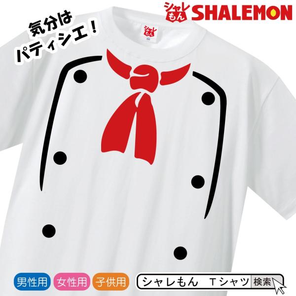 親子ペア、家族みんなでケーキ作りやお料理の時に!なりきりパティシエに変身!!記念撮影やパーティーに着てみてはいかが?お子様大喜びですよ♪高級感ある厚手の生地tシャツです。首回りもしっかりとしたダブルステッチで洗濯しても、ほとんど伸びません。品質に自信あり!プリント部分も高品質。