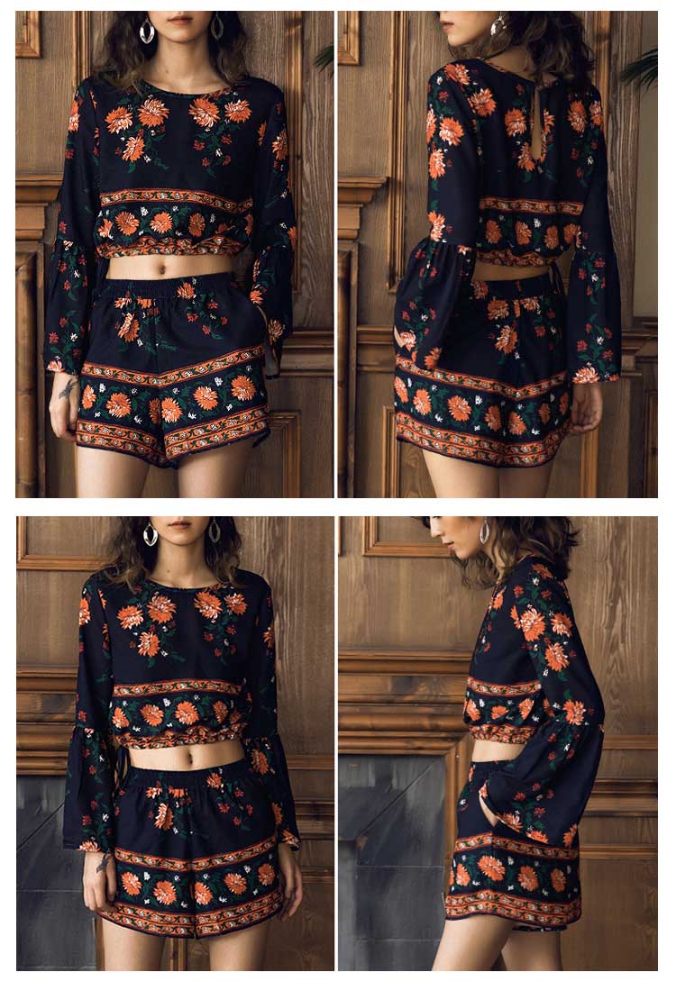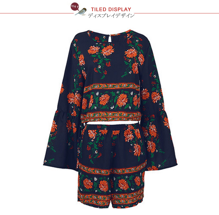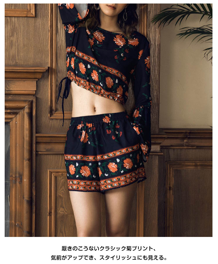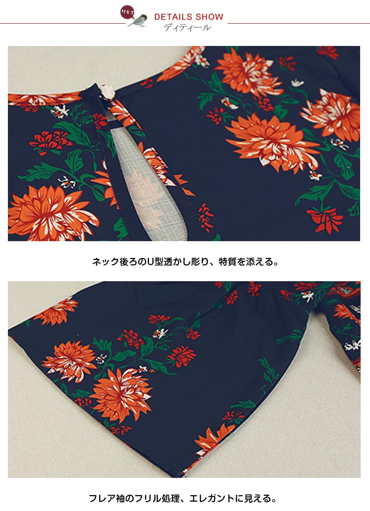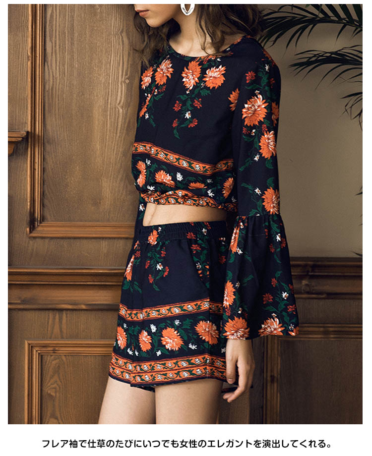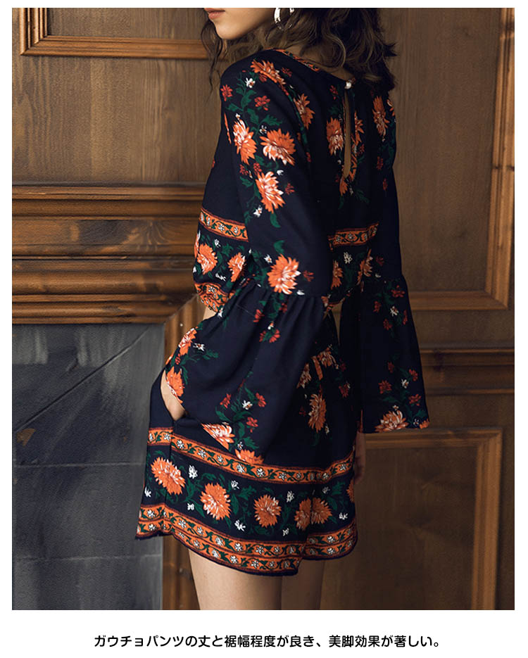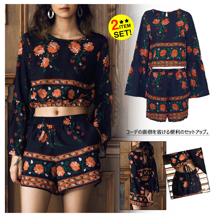 | コーデの面倒を省ける便利のセットアップ。厭きのこうないクラシック菊プリント、気前がアップでき、スタイリッシュにも見える。フレア袖で仕草のたびにいつでも女性のエレガントを演出してくれる。へそ出しとハイウエストデザインで、注目される視線の位置を高めにすると着やせ効果が高くなります。ガウチョパンツの丈と裾幅程度が良き、美脚効果が著しい。 | |