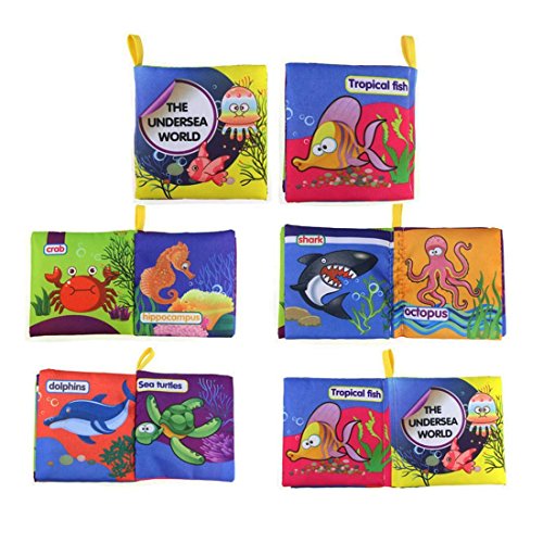 Set of 6 touch and feel cloth book,including Color,Character,Shapes,Food,Animal,The undersea world,Number and Vegetables.