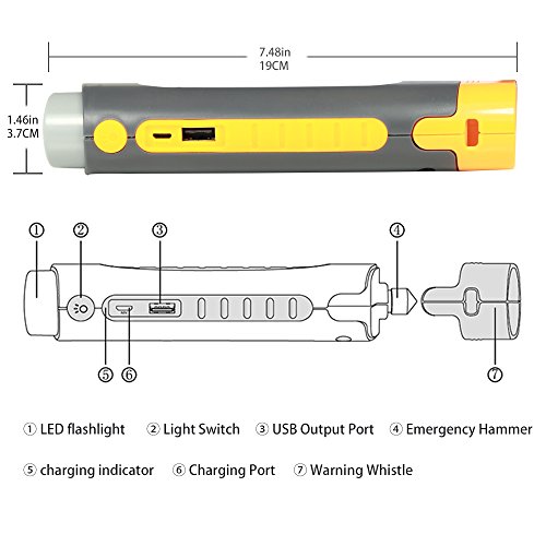 Car Emergency Safety Hammer,4-In-1 Emergency Kit-window breaker & survival whistle & flashlight & Rechargeable Power Bank. Emergency escape tools great for Car Camping Hiking Hunting Home (LX911)