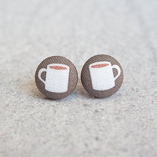 -. Title : Cup of Coffee Fabric Button Earrings