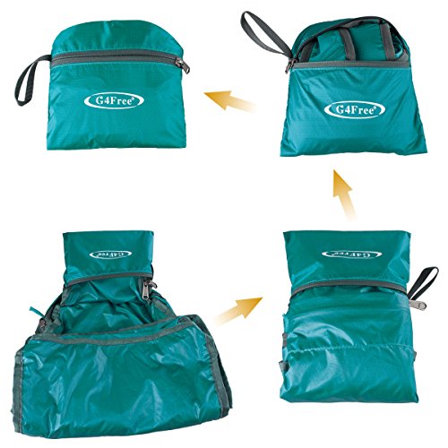 The G4Free packable backpack is made of high quality water and tear resistant nylon material, with abrasion resistant SBS metal zipper and reinforced more than 14 places with rope process. Like a sandwich size after being folded, easy to carry,convenient and practical. It fits into an ultra-compact pouch, so you can easily pack it in your suitcase for use at their destination as an extra bag for the trip. This compact, lightweight backpack is the perfect companion when you are out and about. It will be a fantastic necessity for no matter outdoor sports or leisure activities in or out of the city.Perfect for day trips,vacation,travel,day hikes,school,camping and shopping,etc.