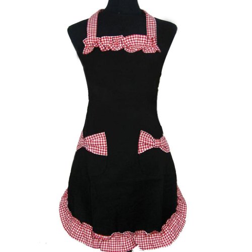 - Title : Crazycity New Classical Sweet Cotton Grid Pattern Working Chefs Kitchen Cooking Cook Women's Bib Apron with Bowknots Pockets Design Great Gift for Wife Daughters Ladies (Black & Red)