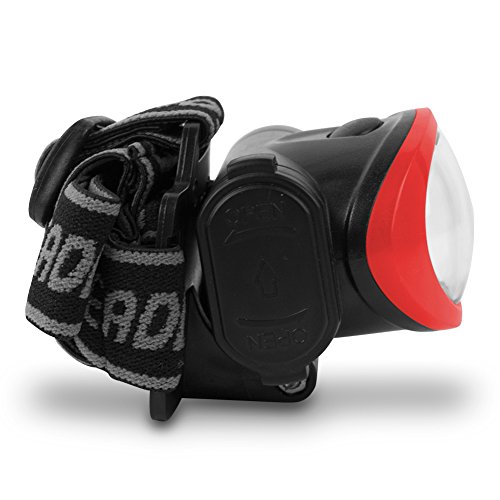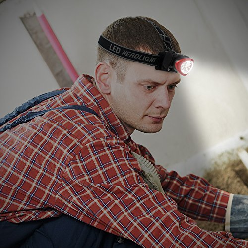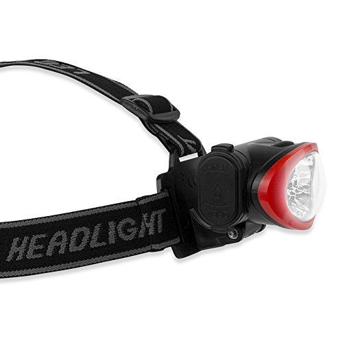 - Feature : Features 3 lighting modes so you can use it with 4 LEDs, all 10 LEDs, or 10 LEDs as a strobe LEDs offer bright, high intensity light Made of durable construction with an adjustable elastic headband / Light head pivots up to 180 degrees so you can point light where you need it Powered by 3 AAA batteries that give up to 25 hours of life Use it for hiking, camping, fishing, home repair, emergencies, and more / Head Lamp 3 AAA Batteries / Color: Black and Red Power Source: 3 AAA batteries (included) Battery Life: 25 hours Lumens: 38 Lumens LED Life: 100,000 hours Lighting Modes: 3 / Light Type: Head light Head Lamp Pivot: 180-degree pivot Lighting Range: 25 m Note: Batteries are included, but not guaranteed.