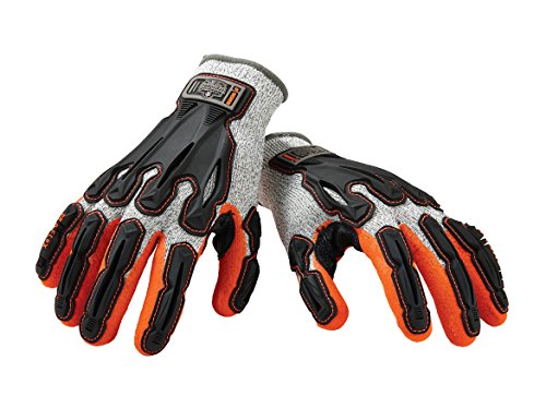 - Feature : Molded TPR armor for impact protection, pinch injury prevention, and blow deflection / Finger TPR extends to fingertips; sewn on for maximum durability and wear / Armor "flex zones" for high dexterity / Abrasion resistant sandy foam nitrile dipped palm with reinforced thumb saddle provides exceptional grip in water, grease and oil / 13-gauge High Performance Polyethylene (HPPE) seamless knit construction delivers EN Level 5 cut protection, Level 3 puncture protection