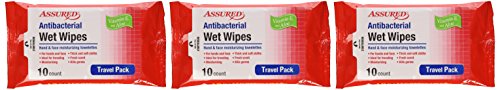 Greenbrier Hand Wipes, Travel Pack Vitamin E & Aloe, Use in Schools, Camping, Cars, Trips, 10 Count per Pack, 3 Piece