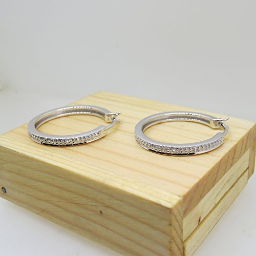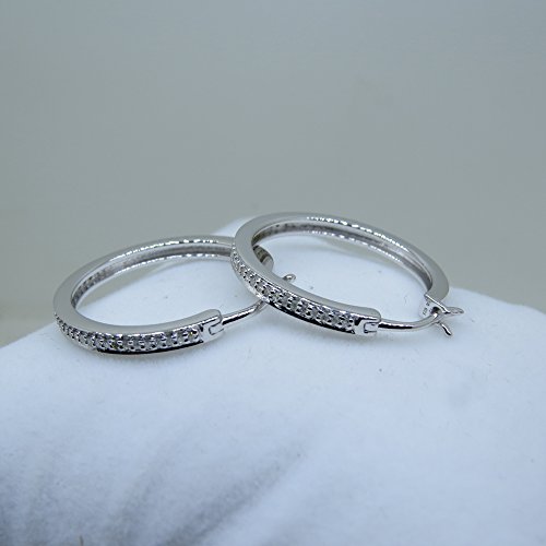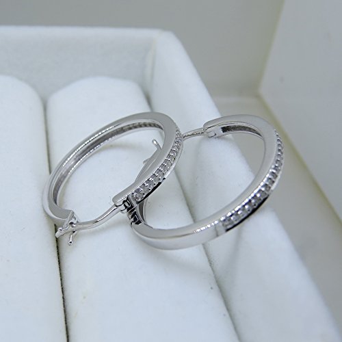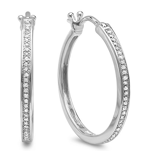 -. Title : 0.20 Carat (ctw) Sterling Silver Round White Diamond Ladies Hoop Earrings 1/5 CT