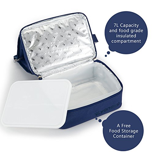 - YONOVO insulated lunch bag with environmental and nontoxic materials: 600D polyester, aluminum foil compartment keeps meals, beverages, fruits, snacks or drugs fresh and well-packed for a long time