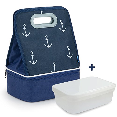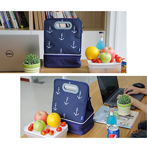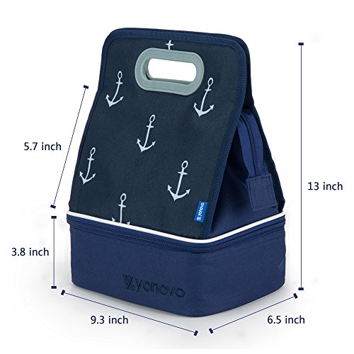 YONOVO Insulated Lunch Bag Cooler Tote with Double-layer Food Grade Compartments for Work Office School Outdoor, Anchor (With Container)