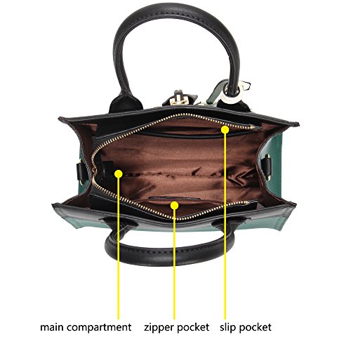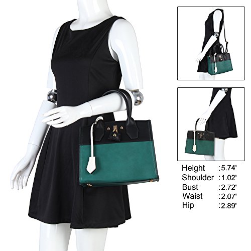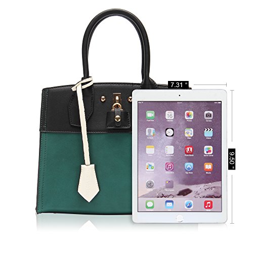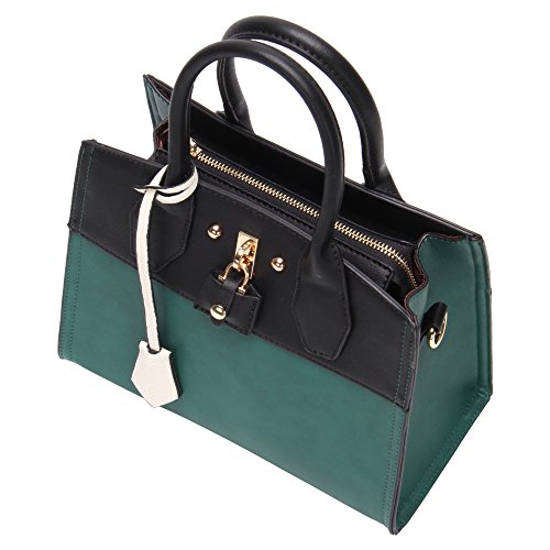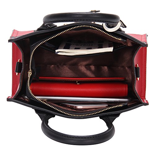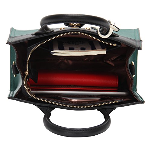 -. Brand : Hynes Victory -. Color : Black -. Department : womens -. Feature : High-end synthetic leather. Top zip closure & Double handles / An adjustable and detachable strap; Metal feet protectors on bottom; Shiny gold tone hardware details / Dimensions: 10.13"L x 5.51"W x 8.66"H. Weight: 1.48 pounds. Shoulder strap drop: 22.6"H.Handle drop: 3.94"H / Structures: Lined interior features 1 backwall zippered pocket, 1 compartment and 1 slip pockets; Multiple pockets and zipped top make it for keeping your essentials secure and also will add feminine flair to your outfit / Please Attention: The zipper closure keeps your essentials security, besides, both the key (inside the logo plaque) and padlock just a unique style designed as an ornament! -. PackageQuantity : 1 -. ProductGroup : Shoes -. ProductTypeName : HANDBAG -. Title : Hynes Victory Colorblock Satchel Handbags