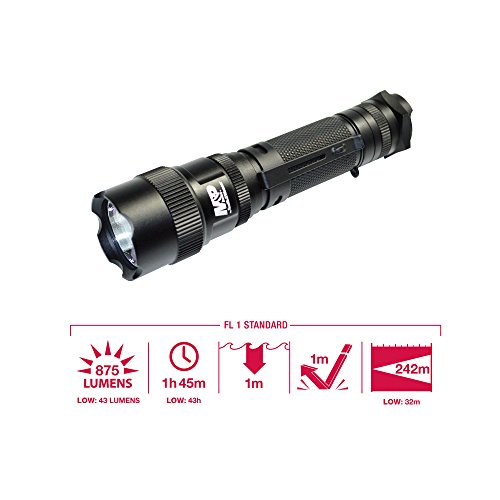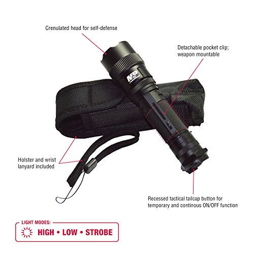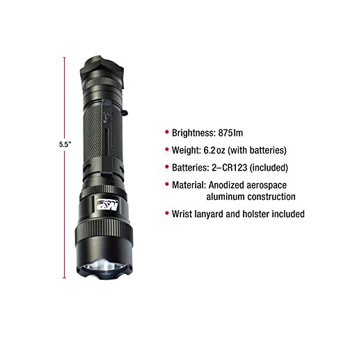 Studio : Powertech Inc. Publisher : Powertech Inc. Binding : Sports Product Description Smith Wesson's MP 12 Tactical Flashlight features the latest technology to provide the highest lumen output from two CR123 lithium batteries for the longest runtime. Using the CREE XML-U2 LED this 3 function tactical flashlight offers High/Low and Strobe Modes with a high output of 875 lumens and a low output of 43 lumens. Runtime is 2 hours of continuous use on high and 43 hours on low with a beam distance of 242 meters on high and 32 meters on low. The body is constructed of aerospace aluminum in a matte black finish with deep diamond cut knurling. Barrel is 1 inch diameter and features a recessed anti-roll tactical tailcap switch and pocket clip. length is 5.55" and weighs 6.15 oz. with batteries. Includes Holster, Lanyard. ANSI FL1 Certified, Waterproof to 1m, Impact Resistant. The Limited Lifetime Warranty guarantees you will find the quality and durability you have come to expect from Smith Wesson since 1852 0
