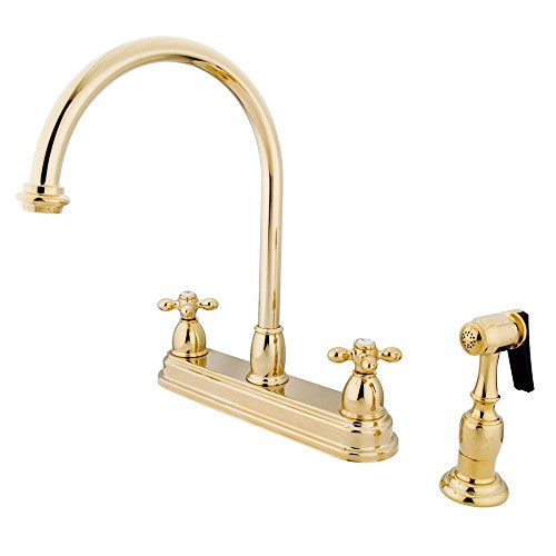 Kingston Brass KB3752AXBS Restoration Deck Mount Kitchen Faucet, Cross Handle with Brass Sprayer, 8-1/2-Inch, Polished Brass