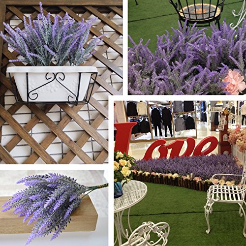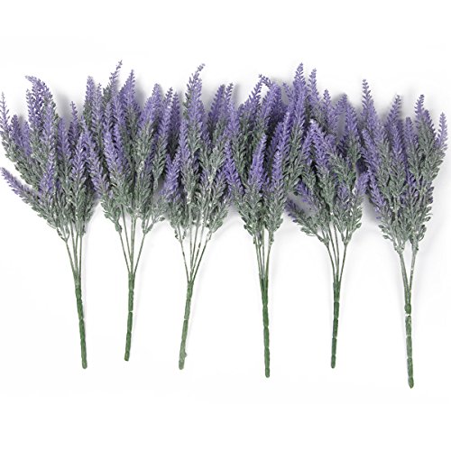 Vopie 6pcs Lavender Bouquet, Artificial Flocked Lavender in Purple Flowers Arrangements Bridal for Indoor Outdoor DIY Home Garden Wedding decor