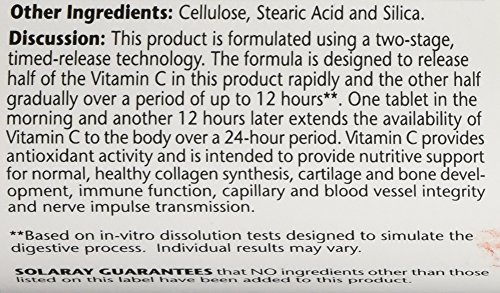 Two stage timed release vitamin C 1000 mg from solaray is unique because each capsule releases half its vitamin C content rapidly after ingestion and the other half over a period of up to 12 hours.