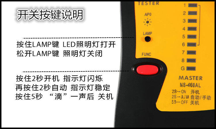 远程测试器:   1-2-3-4-5-6-7-8-G(RJ45)