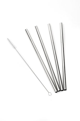 Epica Stainless Steel Drinking Straws Extra Large for Shakes and Smoothies, Set of 4 Plus Cleaning Brush