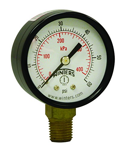Winters PEM Series Steel Dual Scale Economical All Purpose Pressure Gauge with Brass Internals, 0-60 psi/kpa, 2" Dial Display, +/-3-2-3% Accuracy, 1/4" NPT Bottom Mount
