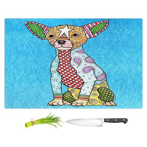 DiaNoche Designs CB-MarleyUngaroChihuahuaAqua2 Marley Ungaro Chihuahua Dog Aqua Cutting Boards from, Large 15" x 11"