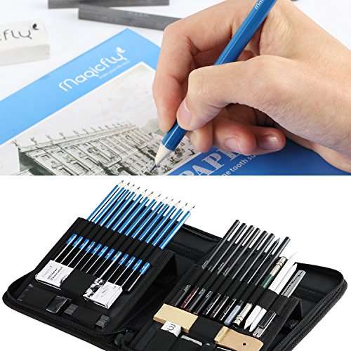 Charcoal Sketching Pencils Set 41 Pcs, Magicfly Drawing Pencil Sketch Set with Sketch Book, Kit Bag, Tools, Erasers, Professional Graphite Pencil Set For Shading, Sketching and Drawing