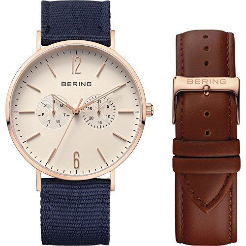 -. Title : BERING Time 14240-564 Men's Classic Collection Watch with Blue Nylon Band, Rose Gold Tone Stainless Steel and scratch resistant sapphire crystal. Designed in Denmark.