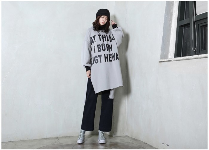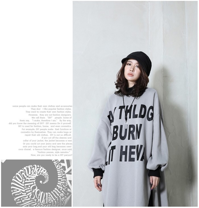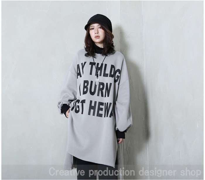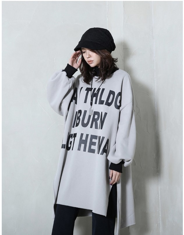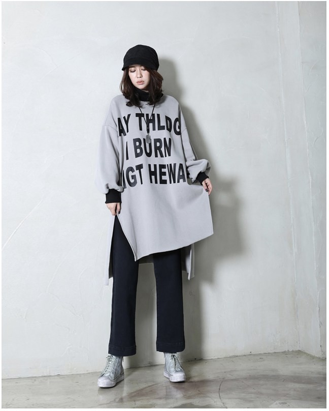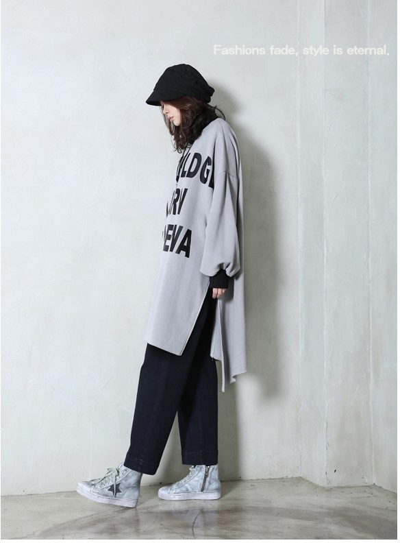 商品名:トップス レディース ロング丈 トレーナー プリント 秋冬 2017 モード系 個性的 40代 ファッション