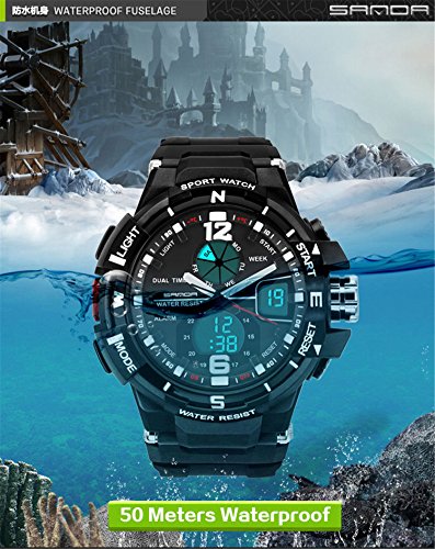 Movement: High quality Digital movement Alarm function Date and Time Stopwatch timing Luminous display Long-life battery Dial diameter: 4.5 cm Case Thickness: 1.5 cm Strap width: 1.8 cm Full length: 23 cm Color: Black,Red,Hot pink Water Resistant: 5ATM, 50 meters water resistant for convenience in your daily life;
