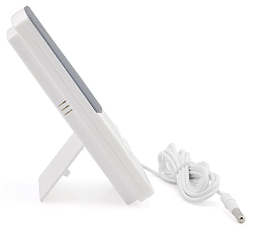 FEATURES - Select temperature in °C and °F by sliding the button at back. Built-in kickstand for desktop use and hanging hole for wall mounting. Runs on a 1.5V AAA battery, not included.