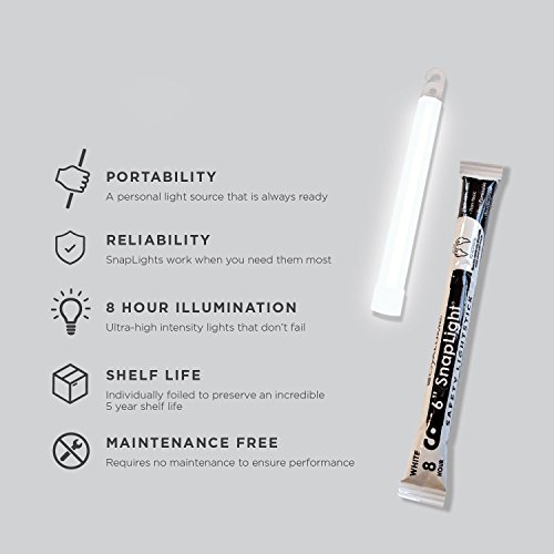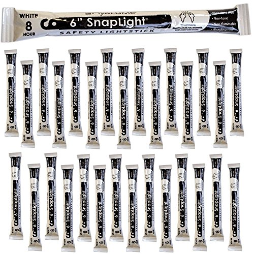 Cyalume SnapLight White Light Sticks – 6 Inch Industrial Grade, High Intensity Glow Sticks with 8 Hour Duration (Pack of 30)