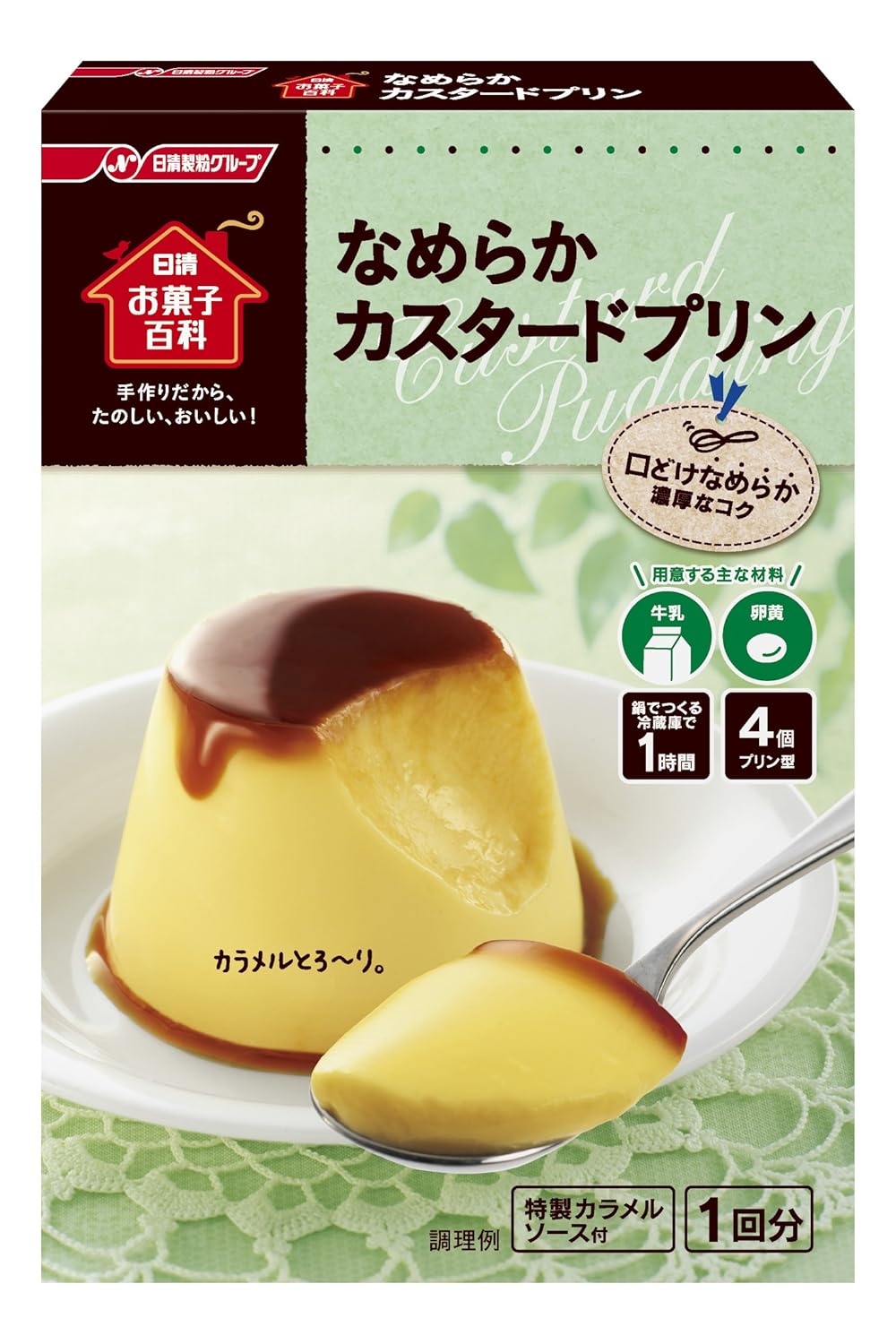 「日清お菓子百科」は、ご家庭でのお菓子作りを通じて笑顔あふれる「すてきな時間」をお届けするブランドです。当社カスタードプリンミックスは、ミックス、牛乳、卵黄を鍋で煮るひと手間を加えることで、なめらかな口あたりのカスタードプリンが家庭で手作りできます。