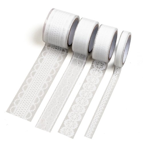4 Rolls of adhesive paper tape, confetti, plaid, stripe, and star: 16-Feet each.Feature