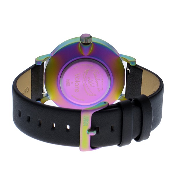 クオーツ、5気圧防水、カラー:ブラック(文字盤)レインボウ(ケース)、ブラック(ベルト)