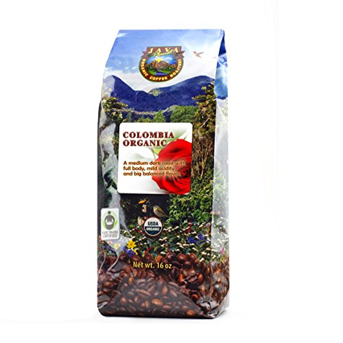 Java Planet - Colombian USDA Organic Coffee Beans, Fair Trade, Low Acid, Medium Dark Roast, Arabica Gourmet Specialty Grade A (1lb)
