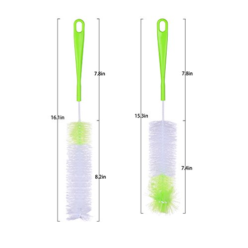 - ✔ MADE TO FIT ALL BOTTLE : Length of Our Greenour bottle brush 2 pack is 16 inch, Our Special design fits all bottle,Great for Washing Beer, Wine, Brewing Bottles, Pitcher, carafe, Glass Jars, Thermos