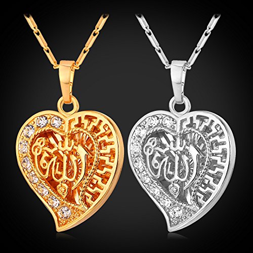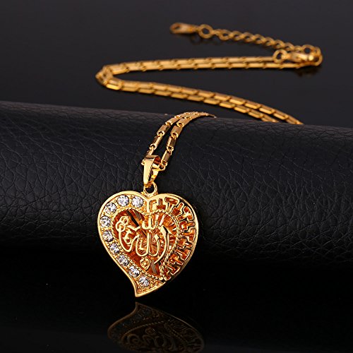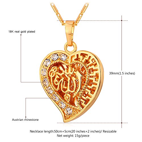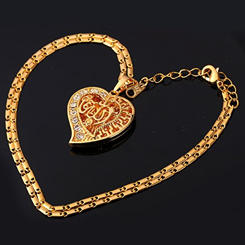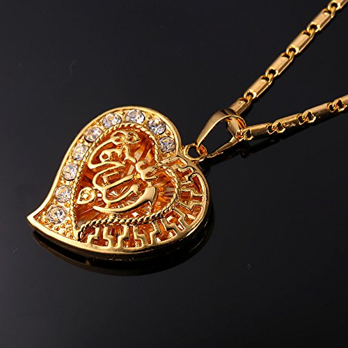 -. Title : Crystal Heart Necklace 18K Gold Plated Allah Pendant With A 22 Inch Chain