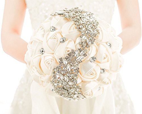 Pavian Advanced Customization S type brooch wedding bouqeut bride holding flowers with rhinestone pearl ivory
