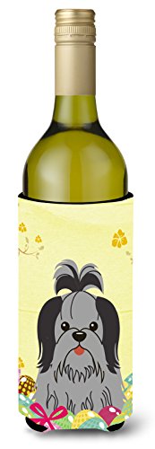 Caroline's Treasures BB6089LITERK Easter Shih Tzu Black Silver Wine Bottle Beverage Insulator Hugger, 750ml, Multicolor