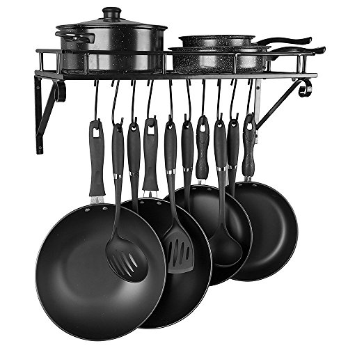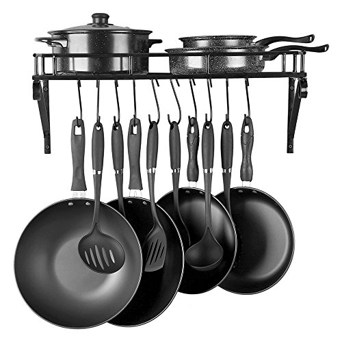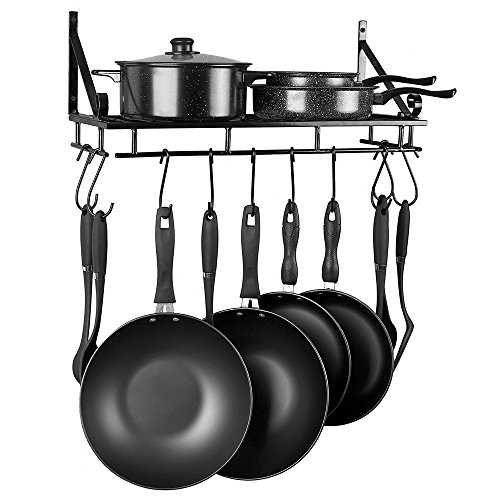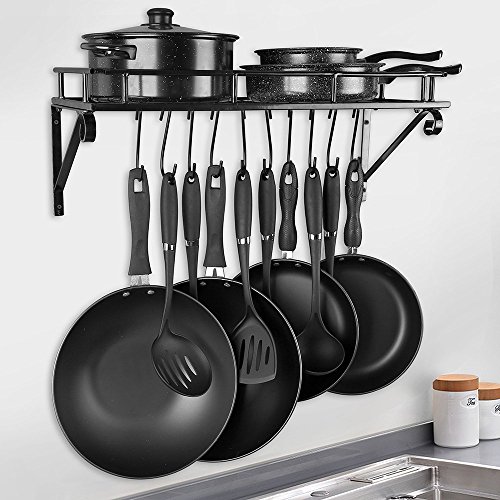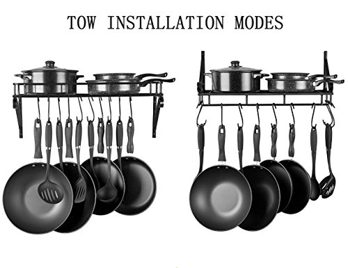 - MODERN DESIGN - Simple style metallic kitchen pot rack, can be installed on your balcony, study or bathroom and can be used to hang many other types of household items.
