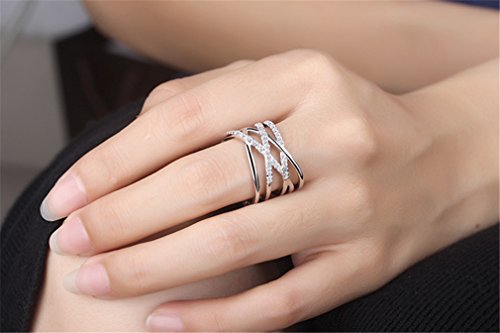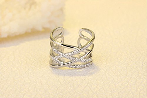 Summens Ringe Damen Verstellbare 925 Silber Einfache Cross-Linien fur Partnerringe Freundschaftsringe Knuckelringe